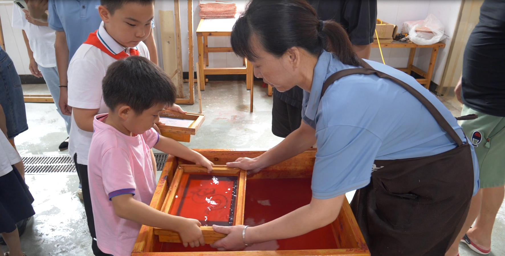 徽州楮皮紙制作工藝精湛,源遠流長,是徽州文化乃至中華文化的重要瑰寶之一、是中國手工紙的巔峰之作。眼下正值暑假,休寧縣的黃山市凝霜文化發(fā)展有限公司的徽州楮皮紙古法造紙車間迎來了一批批前來研學(xué)體驗的學(xué)生團隊,休寧這座“狀元城”掀起一波“非遺熱”。 撿皮、打漿、抄紙、烘紙