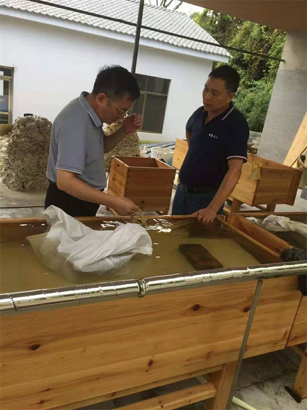 2021年8月27日,中科大湯書昆院長(zhǎng)再一次對(duì)我公司徽州楮皮紙恢復(fù)工藝做指導(dǎo)。